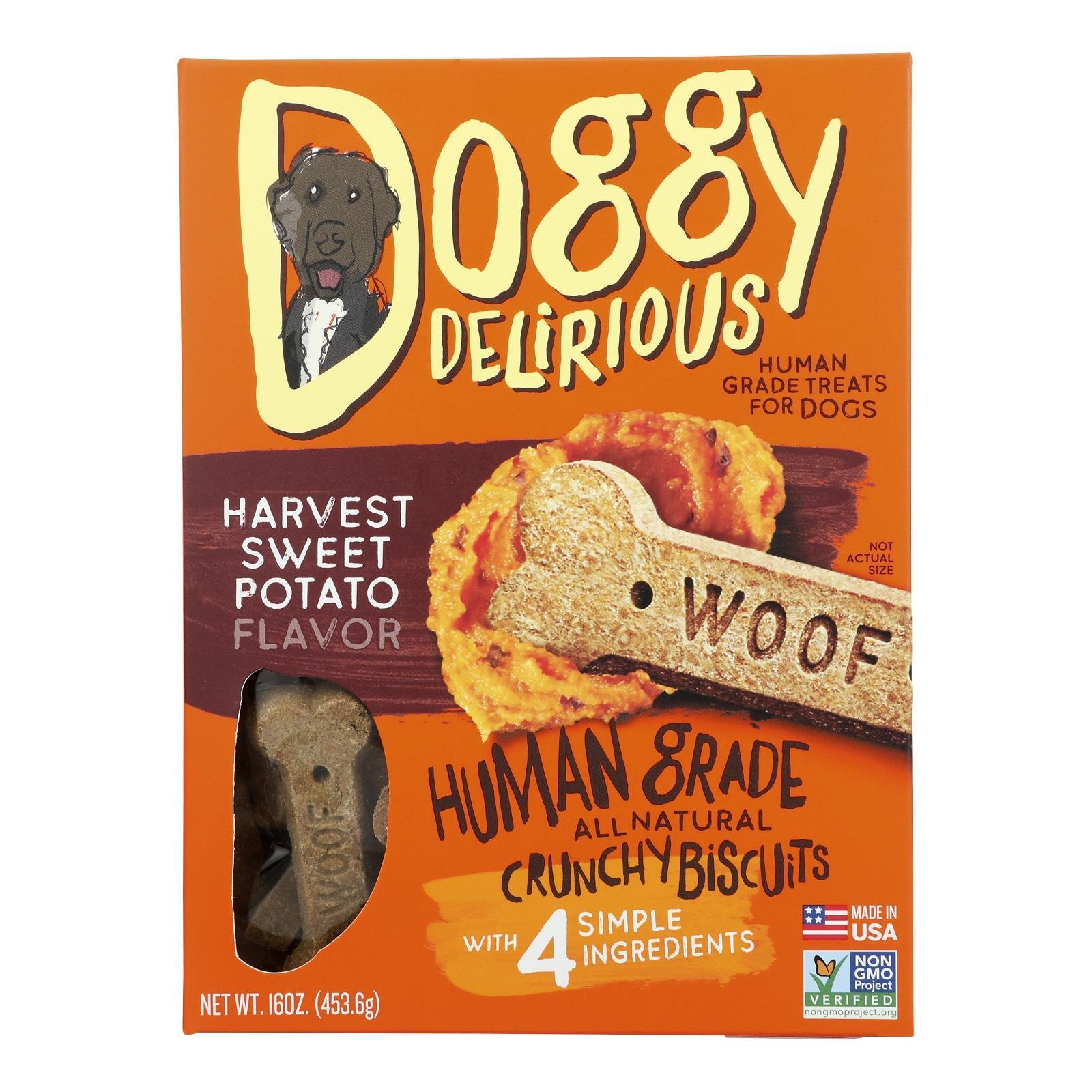 DOGGY DELIRIOUS'S SWEET POTATO BONES DOG TREATS ARE A TASTY TREAT MADE BY THE GOOD DOGS AND HUMANS AT WET NOSES INC. MADE WITH ONLY THE BEST FRESH PRODUCE AND NO ARTIFICIAL INGREDIENTS; OUR SWEET POTATO DOG TREATS ARE FOR DOGS OLD AND YOUNG. WE ALSO DON'T USE WHEAT; SOY OR PRESERVATIVES WHEN CRAFTING OUR DOG TREATS SO YOU KNOW THAT YOU'RE GIVING YOUR DOG A SNACK FILLED WITH ONLY THE BEST. INCLUDES A ONE POUND BAG OF SAVORY DOG TREATS. PLEASE REVIEW NUTRITION FACTS PANEL FOR ALLERGEN/MEDICAL INFORMATION. HERE AT DOGGY DELIRIOUS; WE'VE CREATED AN ALL NATURAL DOG TREAT THAT THAT YOUR DOG WILL LOVE; BY USING ONLY THE FINEST INGREDIENTS. INCLUDES ONE 1 LB. BAG OF DOGGY DELIRIOUS DOG TREATS; SWEET POTATO BONES.